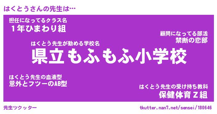 | ヘコむあだ名 | 『はくにゅー』『牛乳』『はくっ子』 |