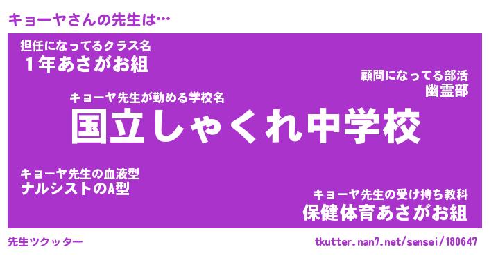 | ヒーロー風カッコイイあだ名 | 『スーパーキョーヤ』『幻影騎士キョ』 |