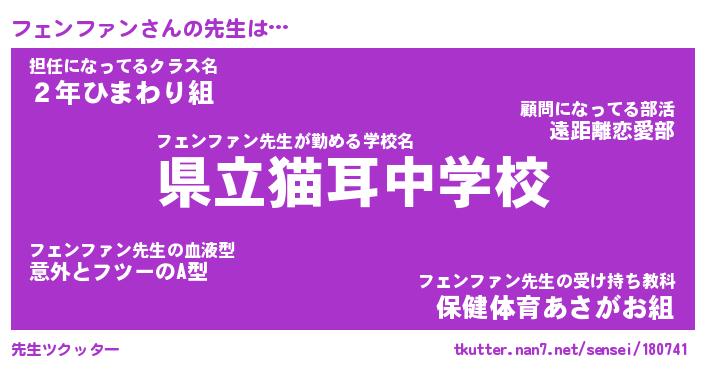 | 男性向けラノベタイトル風あだ名 | 『フェンファンの憂鬱』 |