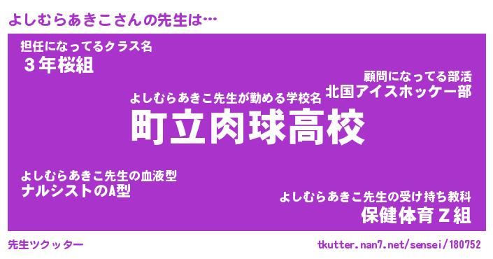 | 伝説のあだ名 | 『封印されし竜騎士よしむらあきこ』 |