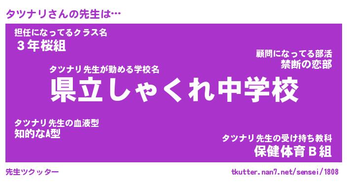| 意味不明あだ名 | 『ペロリンタツナリ』『永久保存タツナリ』 |