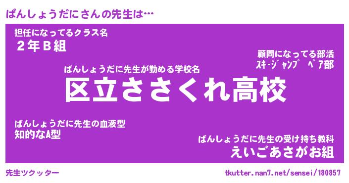 | ポケモン風あだ名 | 『バンチュウ』『バンシダネ』 |