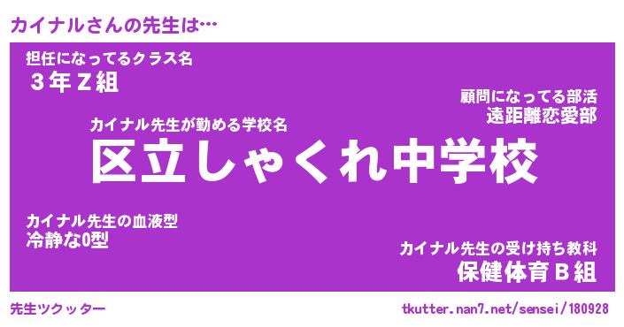 | 意味不明あだ名 | 『ペロリンカイナル』『永久保存カイナル』 |