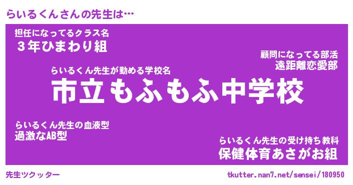 | ヘコむあだ名 | 『らいにゅー』『酢こんぶ』 |