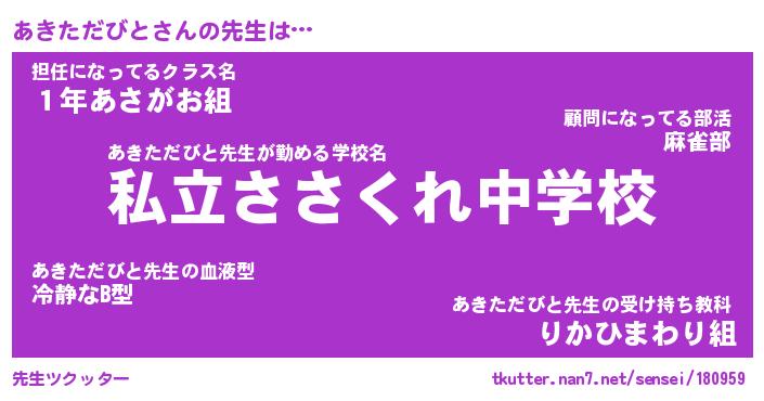 | ヘコむあだ名 | 『あきもー』『牛乳』『あき太郎』 |