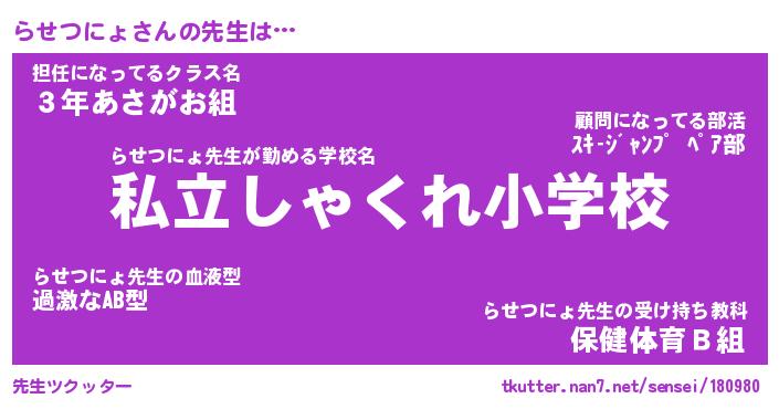 | ポケモン風あだ名 | 『ラセチュウ』『ラセツダネ』 |