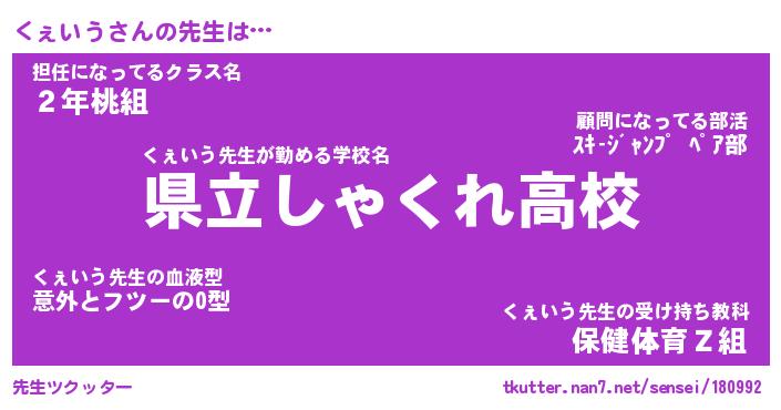 | ヘコむあだ名 | 『くぇっふぃ~』『豆乳』 |