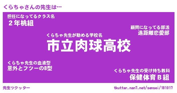 | 意味不明あだ名 | 『ペロリンくらちゃ』『永久保存くらちゃ』 |