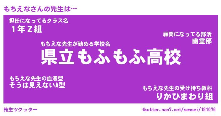 | 胡散臭い通販商品みたいなあだ名 | 『モテモテ間違いなし水晶球…その名も「もちえな」』 |