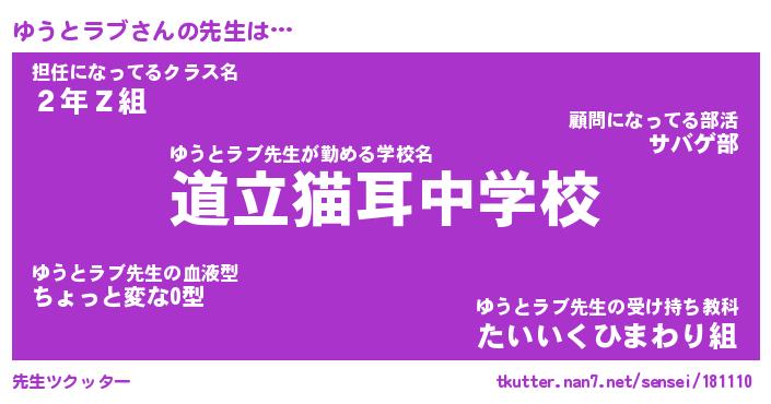 | ファンタジー風あだ名 | 『ユウフェル』『エターナルユウトラブー』 |