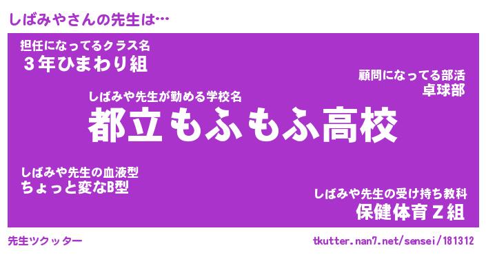 | 意味不明あだ名 | 『ペロリンしばみや』『永久保存しばみや』 |