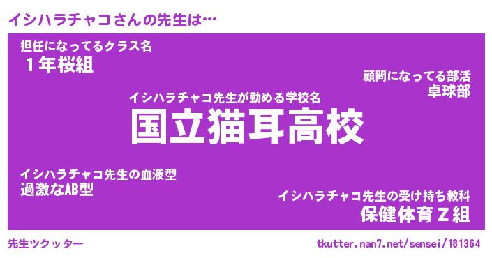 | 意味不明あだ名 | 『ペロリンイシハラチャコ』 |
