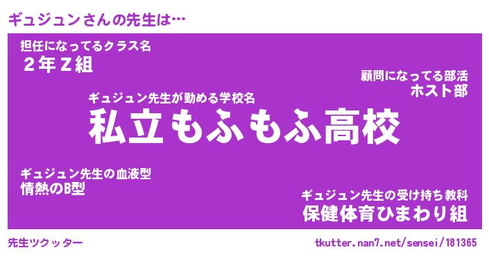 | ファンタジー風あだ名 | 『ギュフェル』『エターナルギュジュンー』 |
