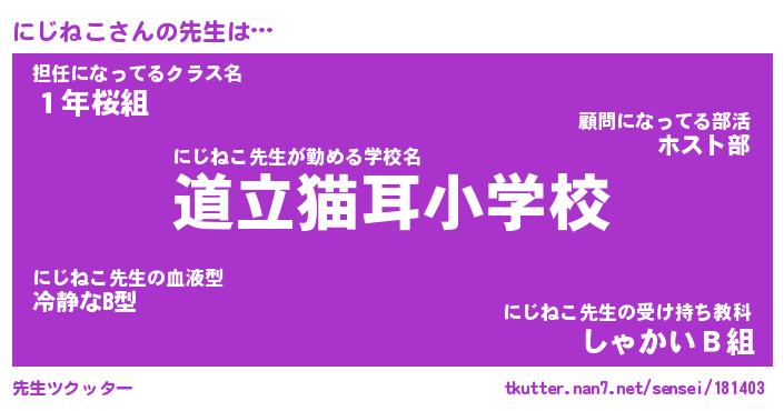 | 肩書あだ名 | 『にじねこ社長』『にじねこ国家主席』 |