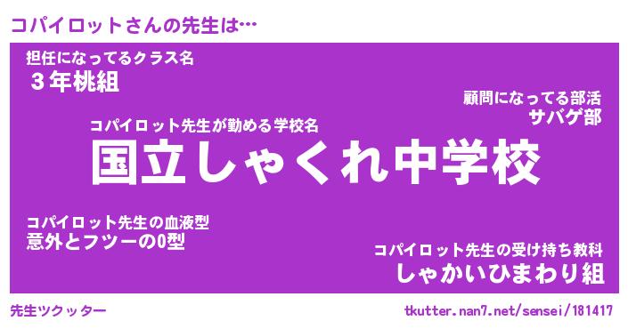 | 男性向けラノベタイトル風あだ名 | 『コパイロットの憂鬱』 |