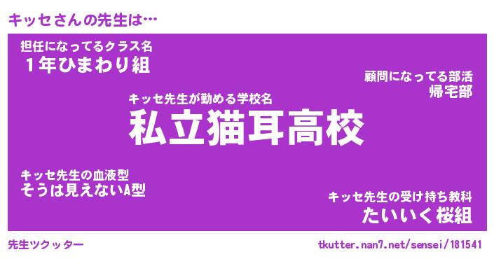 | ポケモン風あだ名 | 『キッチュウ』『キッセダネ』 |