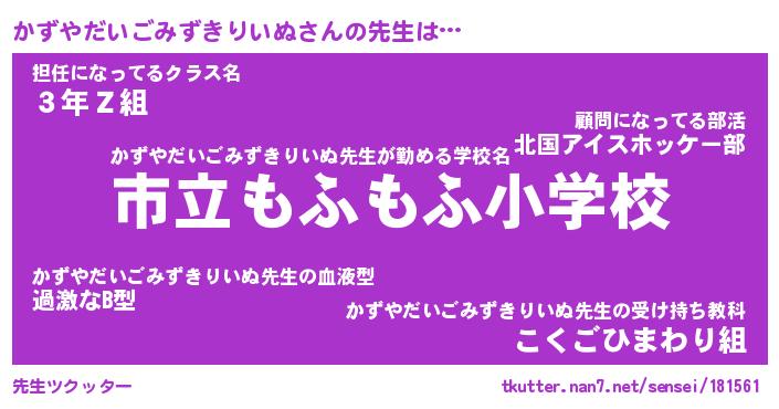 | 伝説のあだ名 | 『伝説の傭兵かずやだいごみずきりいぬ』 |