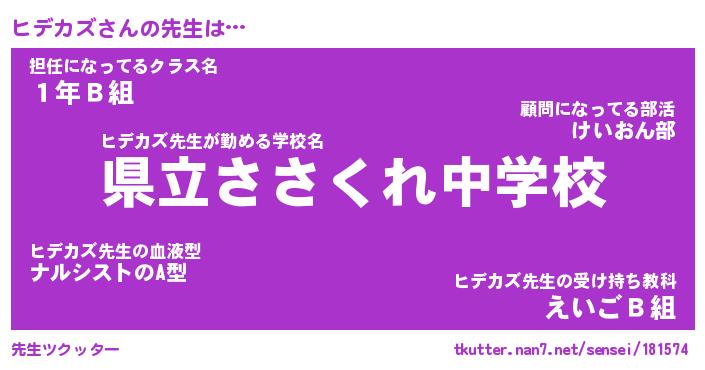 | 意味不明あだ名 | 『ペロリンヒデカズ』『永久保存ヒデカズ』 |