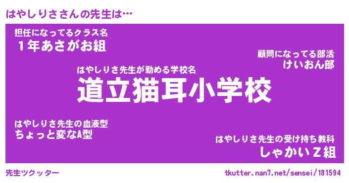 | ファンタジー風あだ名 | 『ハヤフェル』『エターナルハヤシリサー』 |