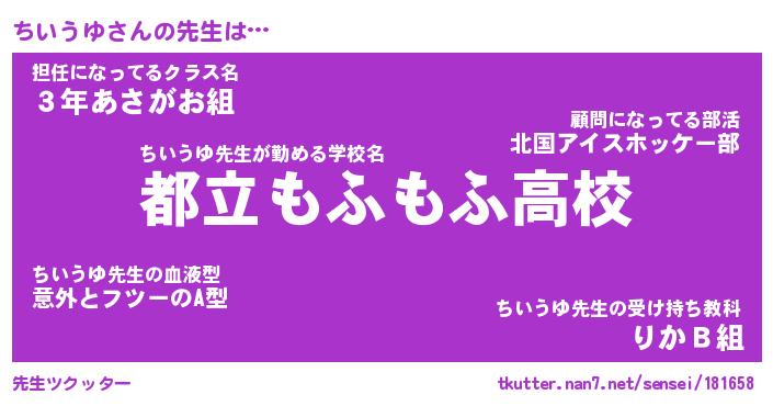 | ファンタジー風あだ名 | 『チイフェル』『エターナルチイウユー』 |
