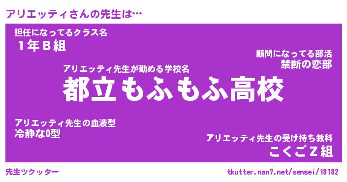| ヘコむあだ名 | 『アリにゅー』『つくし』『アリお』 |