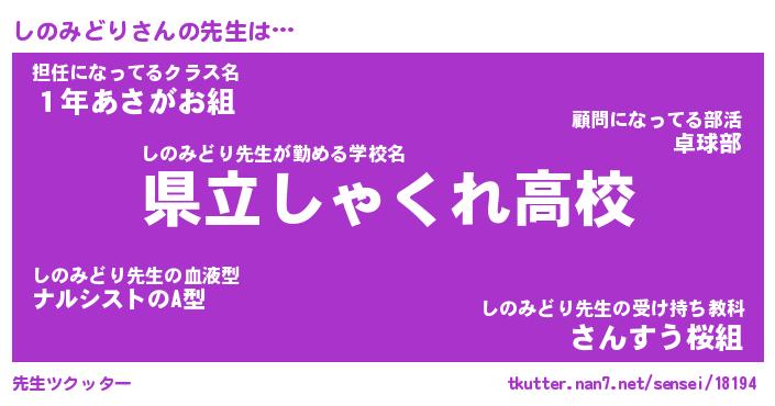 | ファンタジー風あだ名 | 『シノフェル』『エターナルシノミドリー』 |