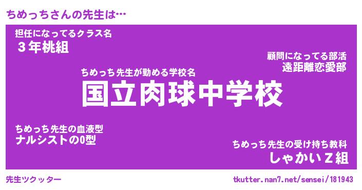 | 意味不明あだ名 | 『ペロリンちめっち』『永久保存ちめっち』 |