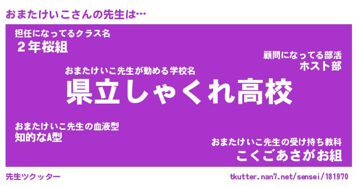 | 伝説のあだ名 | 『不死鳥のスナイパーおまたけいこ』 |