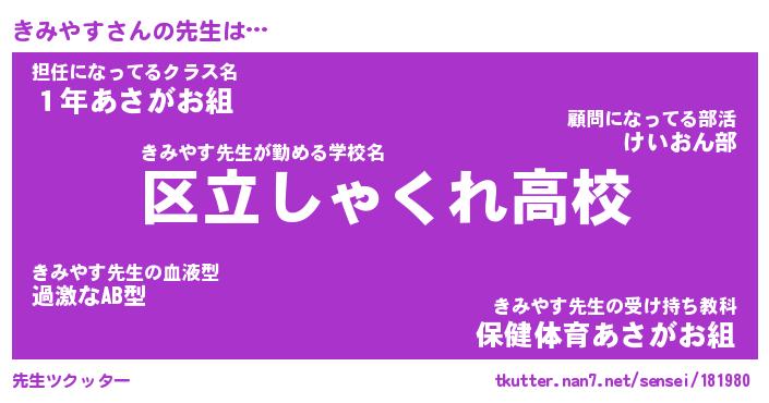 | ヒーロー風カッコイイあだ名 | 『スーパーキミヤス』『銀牙騎士キミ』 |
