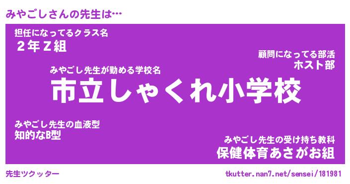 | ファンタジー風あだ名 | 『ミヤフェル』『エターナルミヤゴシー』 |