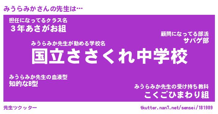 | ファンタジー風あだ名 | 『ミウフェル』『エターナルミウラミカー』 |