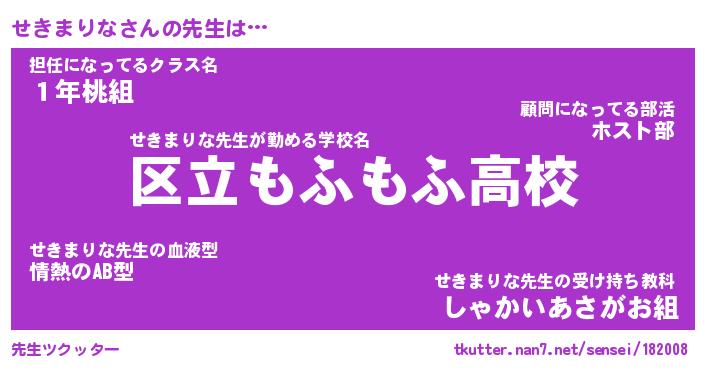 | ファンタジー風あだ名 | 『セキフェル』『エターナルセキマリナー』 |