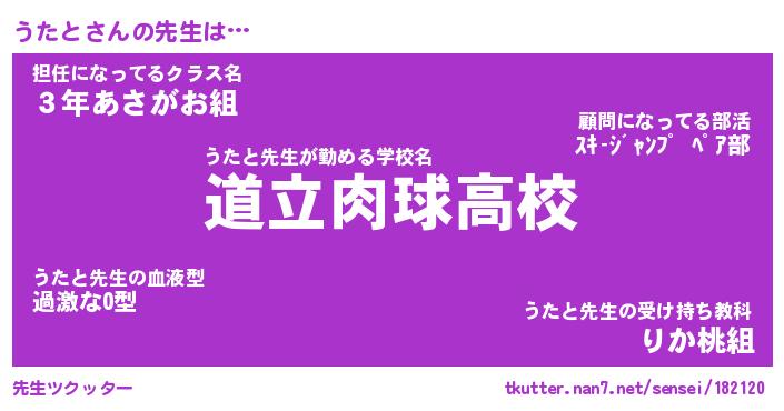 | 意味不明あだ名 | 『ペロリンうたと』『うたとフォーエバー』 |