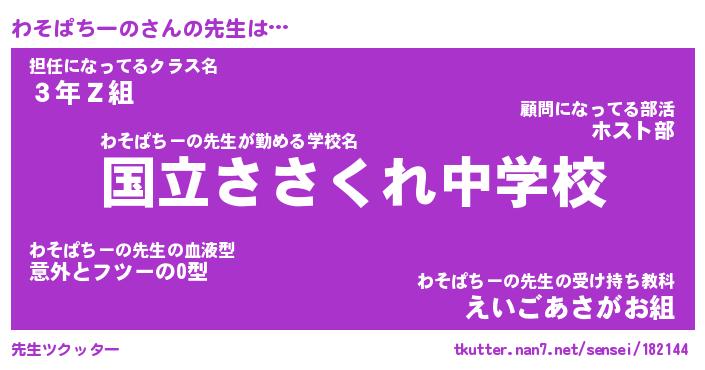 | 伝説のあだ名 | 『伝説のスナイパーわそぱちーの』 |