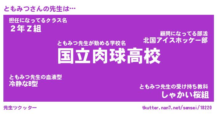 | ヘコむあだ名 | 『ともふぇ~』『なまこ酢』 |