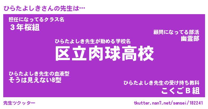 | ヘコむあだ名 | 『ひらふぇ~』『なまこ酢』『ひらお』 |