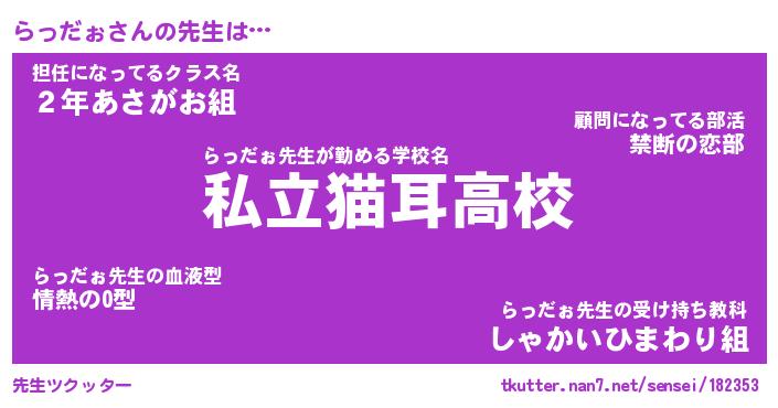 | ヘコむあだ名 | 『らっにー』『なまこ酢』『らっっ子』 |
