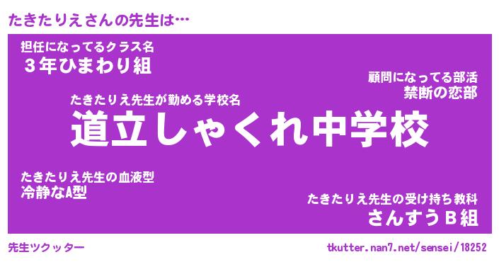 | 肩書あだ名 | 『たきたりえ御曹司』『たきたりえ大統領』 |