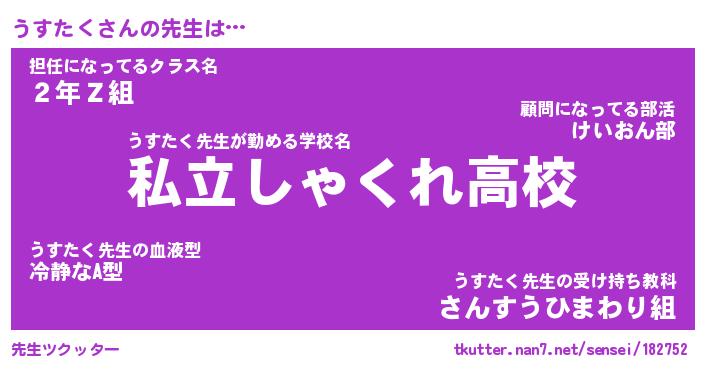 | ファンタジー風あだ名 | 『ウスフェル』『エターナルウスタクー』 |