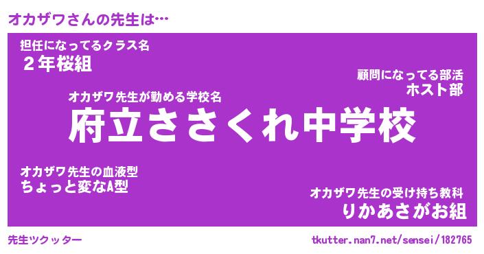| 意味不明あだ名 | 『ペロリンオカザワ』『永久保存オカザワ』 |
