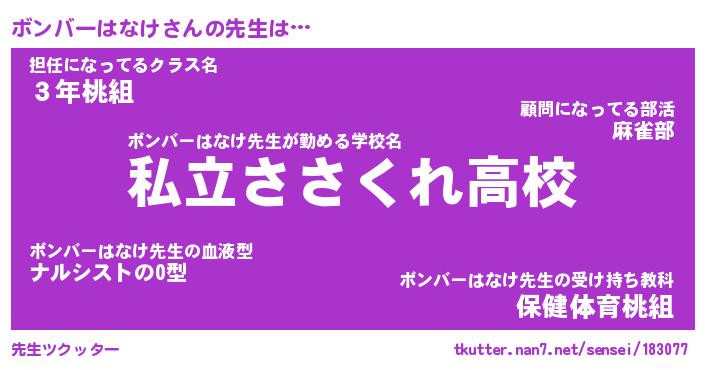 | 男性向けラノベタイトル風あだ名 | 『ボンバーはなけの憂鬱』 |