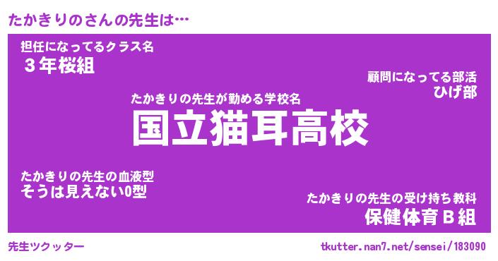 | ヒーロー風カッコイイあだ名 | 『スーパータカキリノ』『炎刃騎士タカ』 |