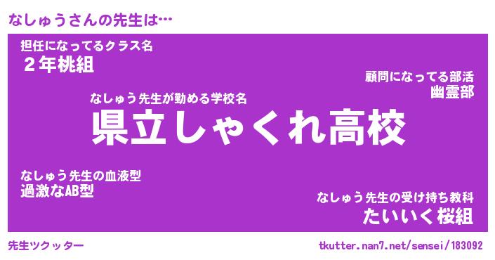 | 意味不明あだ名 | 『ペロリンなしゅう』『永久保存なしゅう』 |