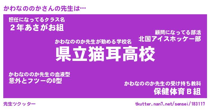 | ヘコむあだ名 | 『かわにー』『牛乳』『かわお』 |