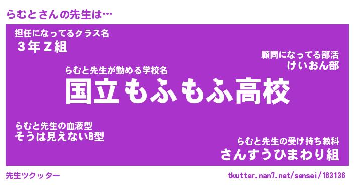 | 意味不明あだ名 | 『ペロリンらむと』『らむとフォーエバー』 |