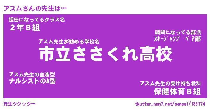 | ポケモン風あだ名 | 『アスチュウ』『アスムダネ』 |