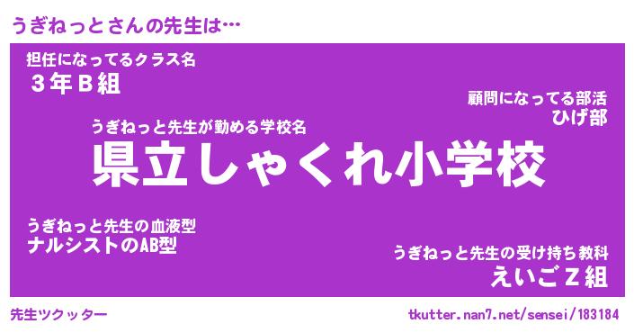 | 男性向けラノベタイトル風あだ名 | 『うぎねっとの憂鬱』 |