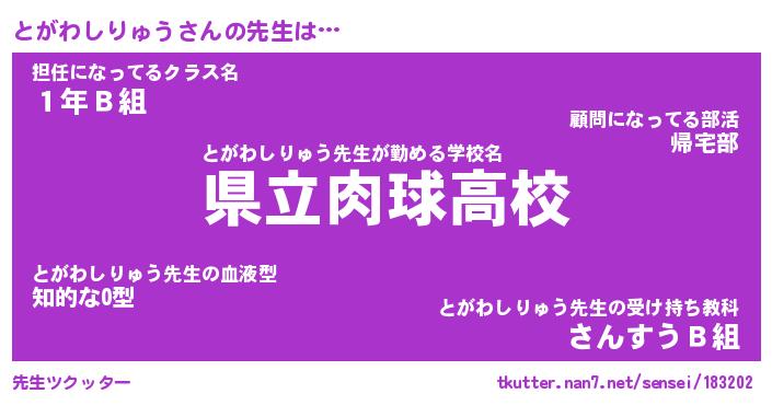 | 男性向けラノベタイトル風あだ名 | 『とがわしりゅうの憂鬱』 |