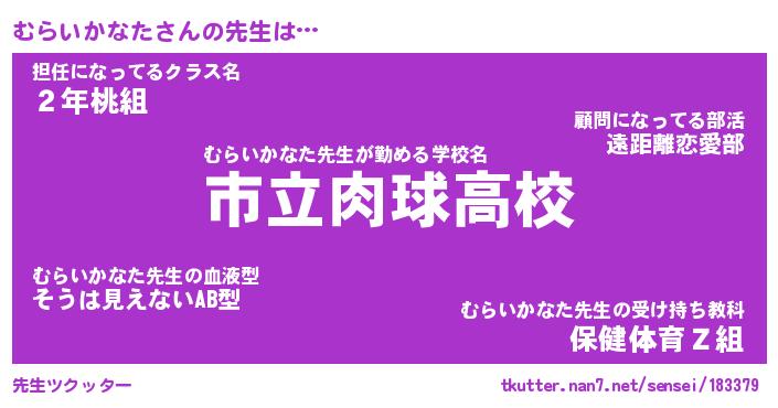 | ヘコむあだ名 | 『むらふぇ~』『なまこ酢』『むらを』 |