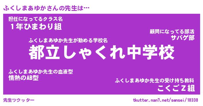 | 伝説のあだ名 | 『不死鳥のスナイパーふくしまあゆか』 |